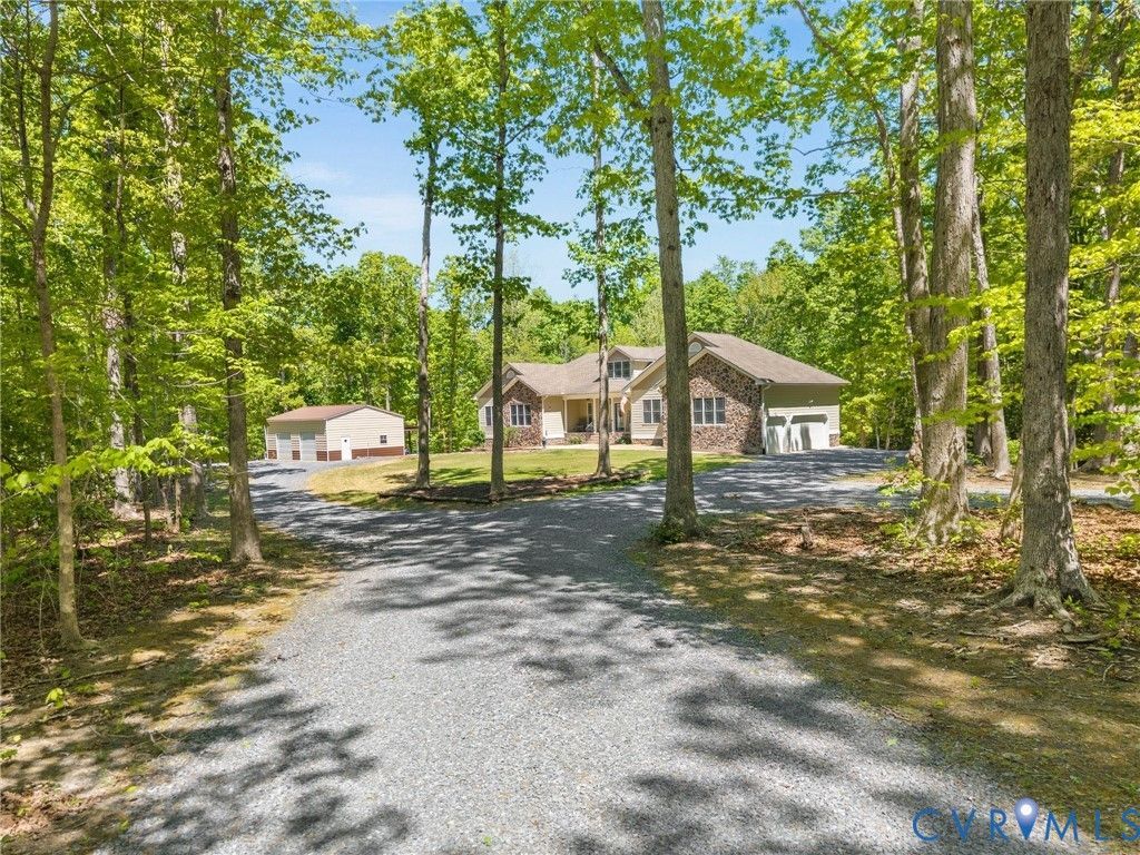 Set on 8.77 private acres in Powhatan County, 6126 Autumn Bluff offers a rare combination of space, flexibility, and high-performance construction. Thoughtfully built using advanced methods, this home features structural insulated panel (SIP) construction paired with a Superior Walls foundation, delivering enhanced energy efficiency, structural strength, and long-term durability beyond typical construction. A tankless water heater, whole-home Honeywell ventilation system, generator, and a new 5-ton HVAC system further support efficient, comfortable living year-round. A spacious front porch welcomes you into a bright, open interior highlighted by soaring cathedral ceilings, rich wood flooring, and a seamless flow between the living, dining, and fully renovated kitchen-designed for both everyday comfort and entertaining. The kitchen is equipped with a newer Samsung suite of stainless steel appliances. The main level offers the convenience of first-floor living, featuring four bedrooms, three full baths, a renovated laundry room, and a dedicated office. The walkout lower level expands the home's versatility with a fifth bedroom, full bath, and generous living space, opening to a covered patio-ideal for guests, recreation, or multigenerational living. Outdoor features include a covered rear patio, outdoor shower, and an above-ground pool with a new liner and pump. The exterior has recently been refreshed with a durable Rhino Shield coating, offering long-term protection and reduced maintenance. Additional improvements include a substantial detached 35' x 35' garage/workshop with a concrete slab and open interior-ideal for equipment, hobbies, or additional vehicle storage-along with a 20' x 12' Amish-built shed for organized lawn and outdoor equipment storage. Horses are permitted, providing flexibility for equestrian use or hobby farming. High-speed fiber optic internet is available, supporting modern connectivity for remote work and streaming.